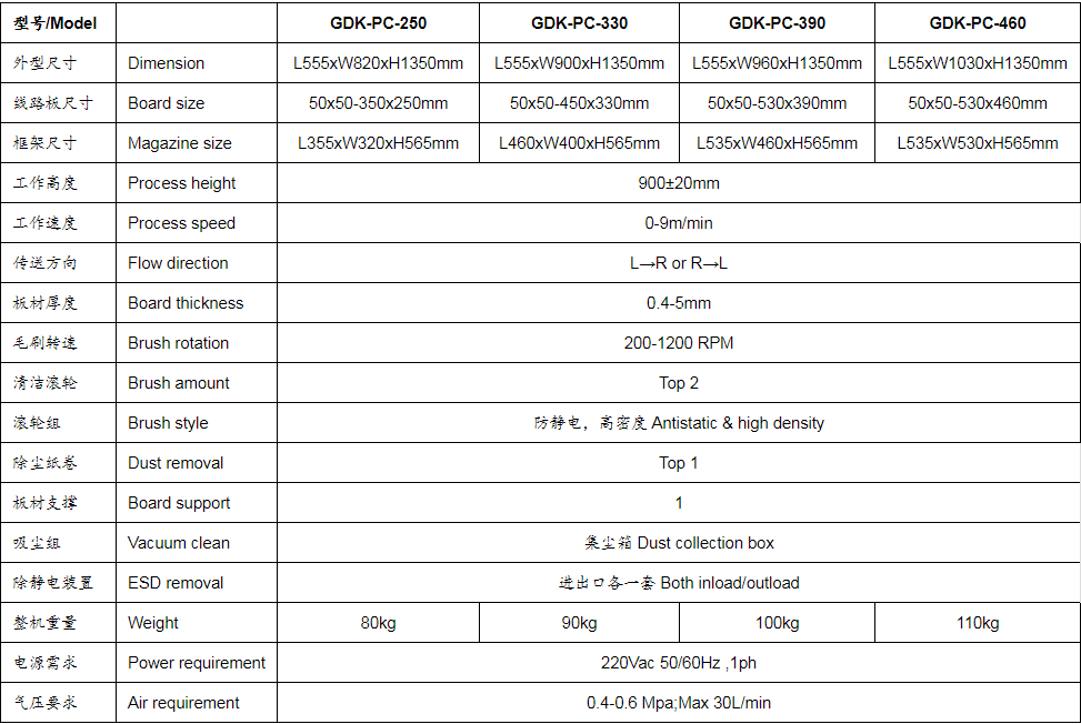 1 适用于上板后印刷前位置,对板材进行作业前之清洁 Clean the PCB in front of the printer